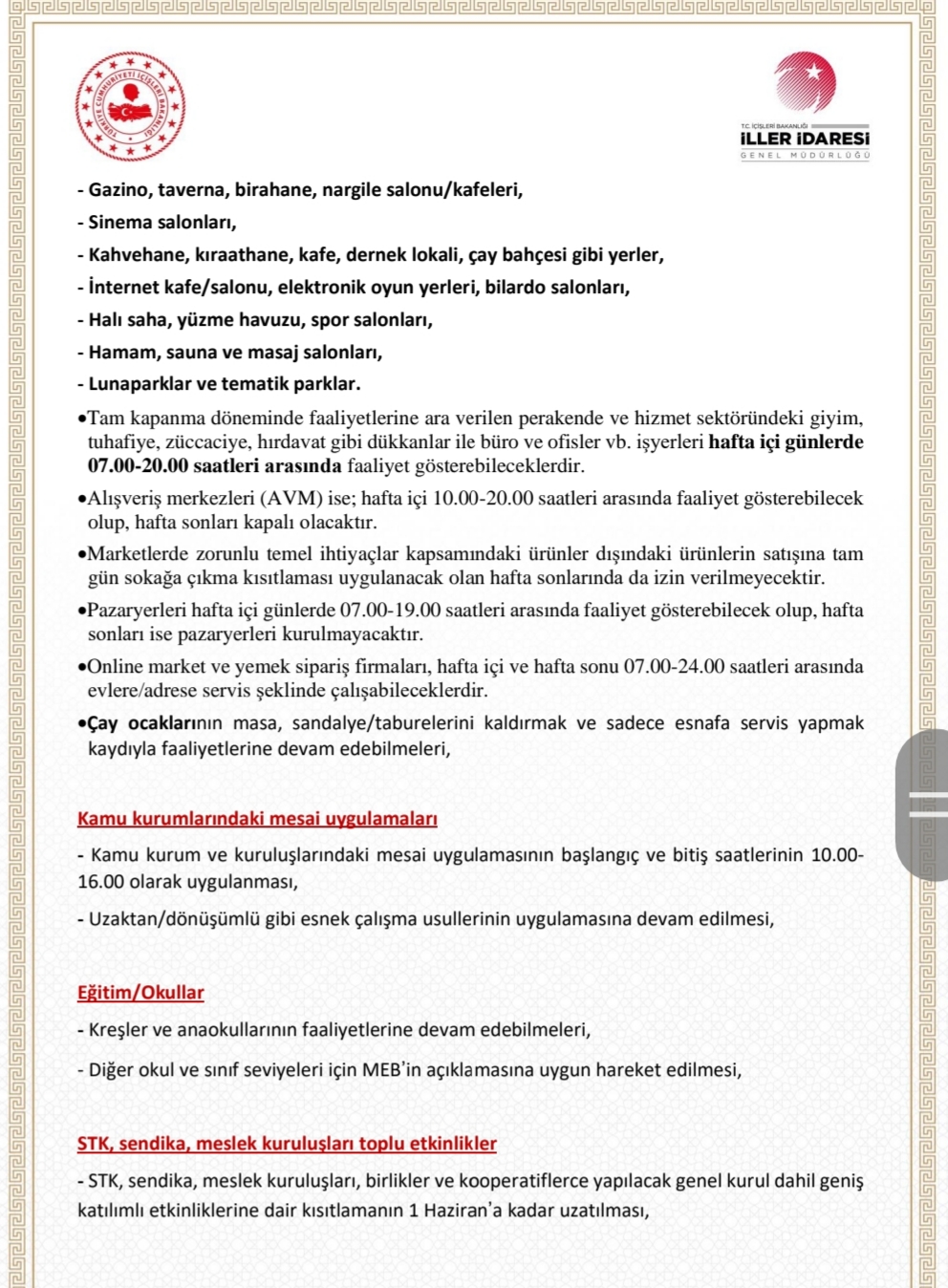 17 MAYIS – 1 HAZİRAN ARASI KADEMELİ NORMALLEŞME DÖNEMİ
